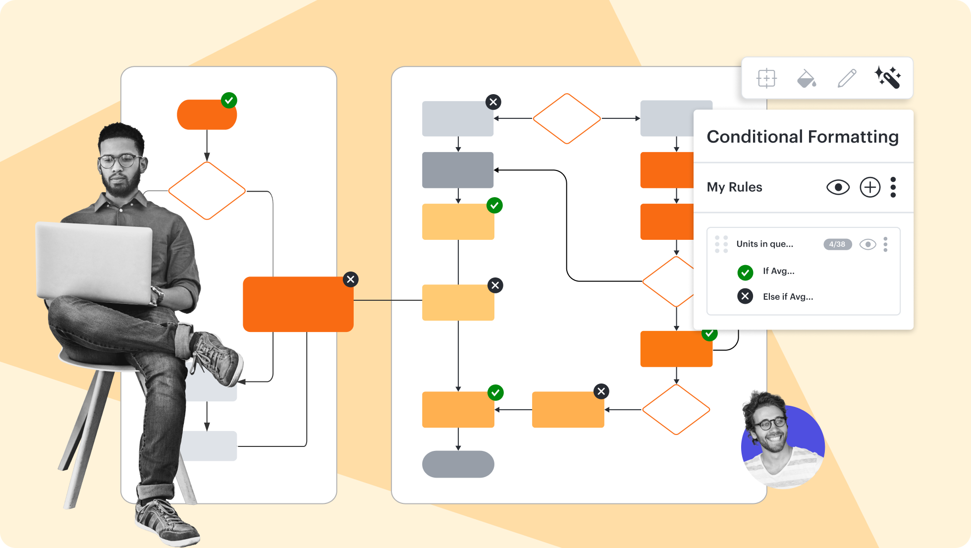 Generate visuals automatically with AI and data imports, or build your own using intuitive diagramming tools.