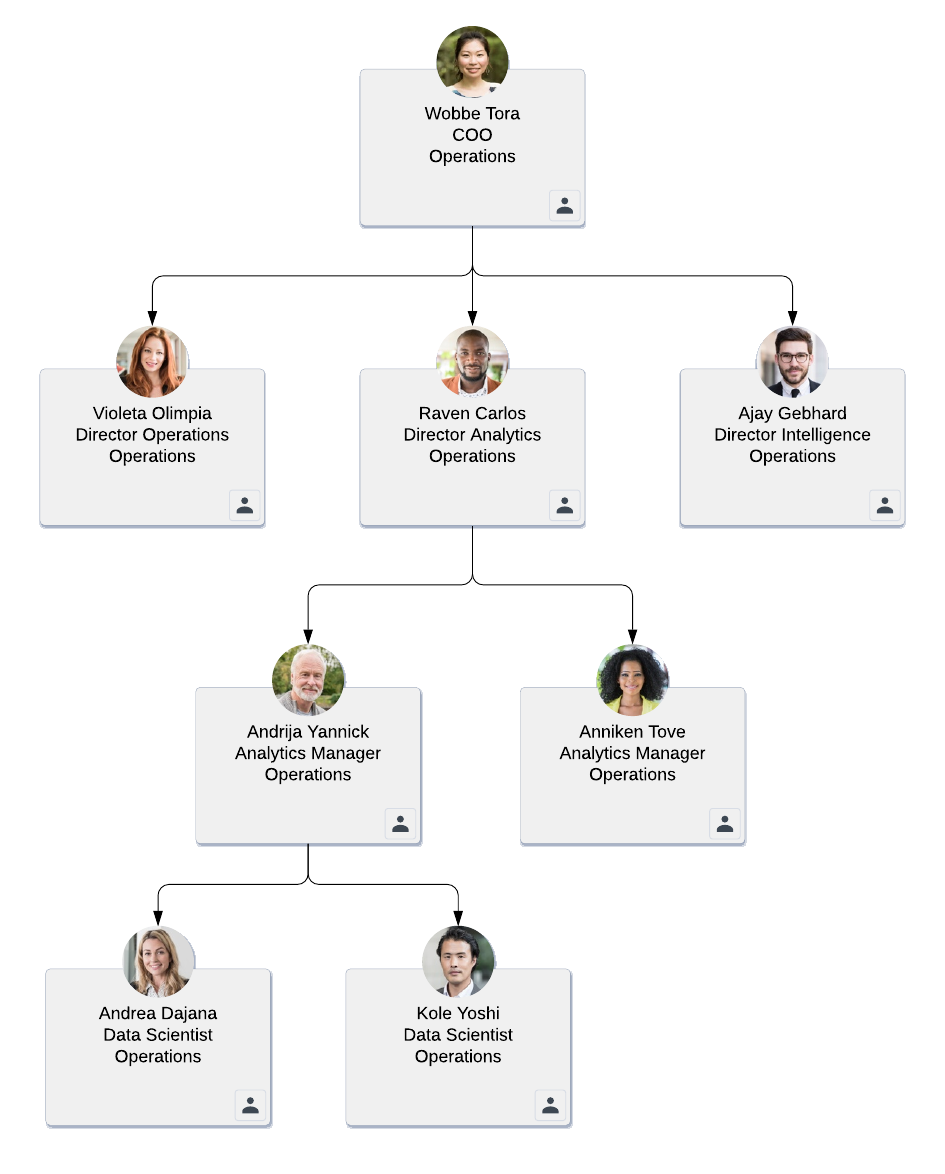 As soon as you start the discovery process, you should begin building an account map. The first step in account mapping is to gather your contacts. Create boxes or add pictures to a new document to represent each of your contacts within an organization. Or get started with a ready-to-use template like the one below and follow along with the next six steps.