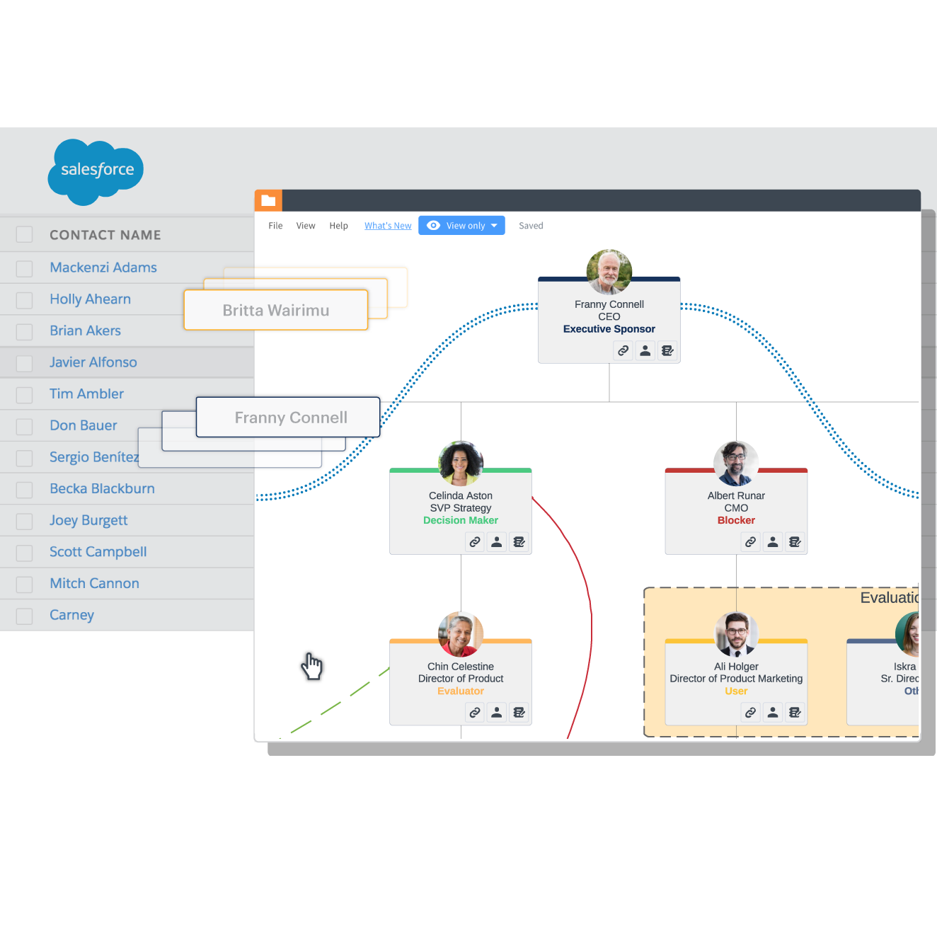 Integrated software prevents data silos from occurring, as all information can be viewed in one place or across all platforms seamlessly. For example, Lucidchart integrates with Salesforce, allowing sales reps to quickly build account maps from their contacts and share that information to find the fastest path to sell.