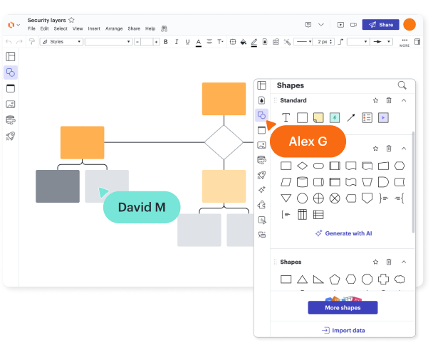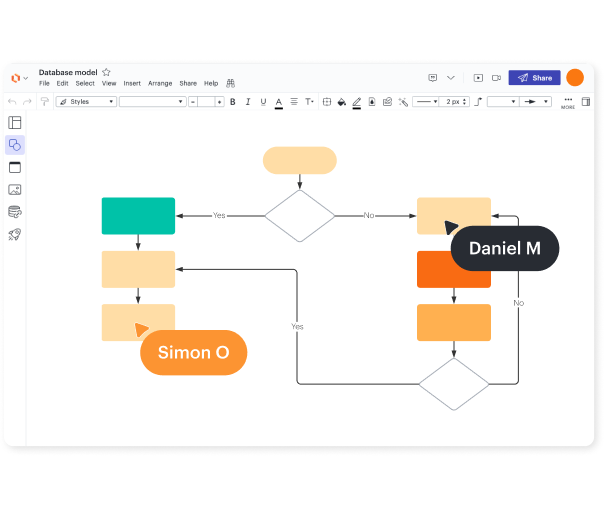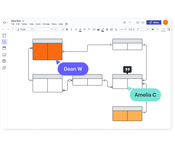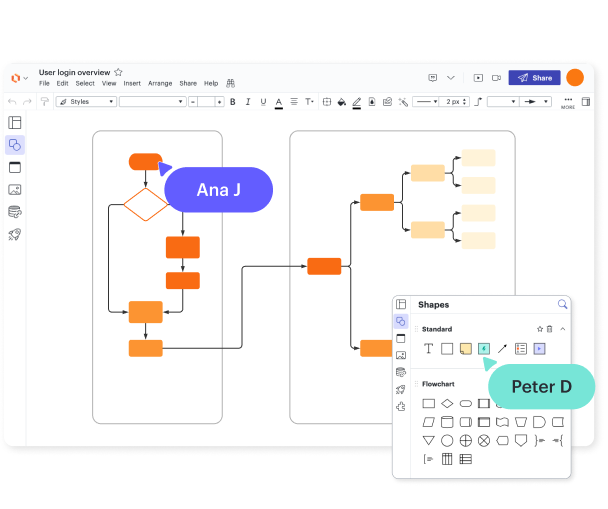 Drive alignment with your team by collaborating in the same space. Quickly map out processes and ideas together in real time so that you never miss a beat.