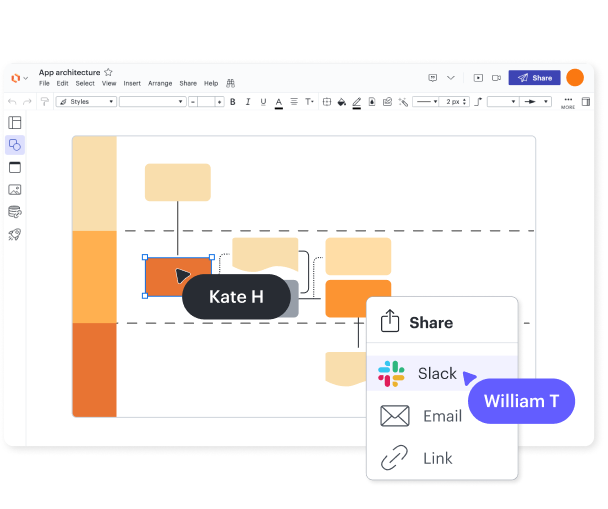 Share your UML diagram with other teams or stakeholders. Embed your diagram in a wiki, send it in an email, or share it with integrations like Jira, Confluence, and Slack.
