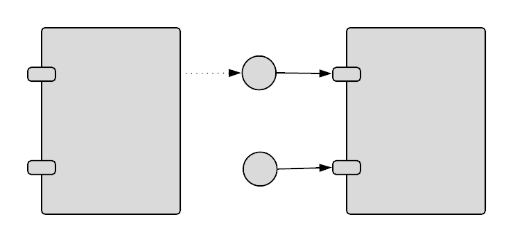 Zeigt Eingaben oder Materialien an, die eine Komponente entweder empfängt oder bereitstellt. Schnittstellen können durch Textnotizen oder Symbole in unterschiedlichen Formen dargestellt werden. |