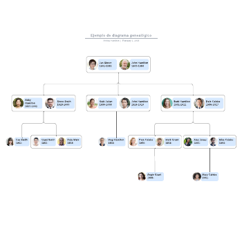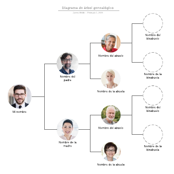 Un árbol genealógico es una representación gráfica de la ascendencia de una persona que rastrea sus relaciones con antepasados comunes. Gráficamente similar a un organigrama, este diagrama en general se presenta con una estructura de árbol que empieza con una persona como la raíz. A partir de la raíz, las líneas que representan las ramas terminan en cajas que representan las hojas. Cada hoja representa a un integrante de la familia, e incluye información tal como su fecha de nacimiento, casamiento y muerte. Un diagrama de árbol familiar o genealógico hace que sea sencillo registrar las personas, los lugares y los acontecimientos que conforman la historia familiar para compartirlos con otras personas.
