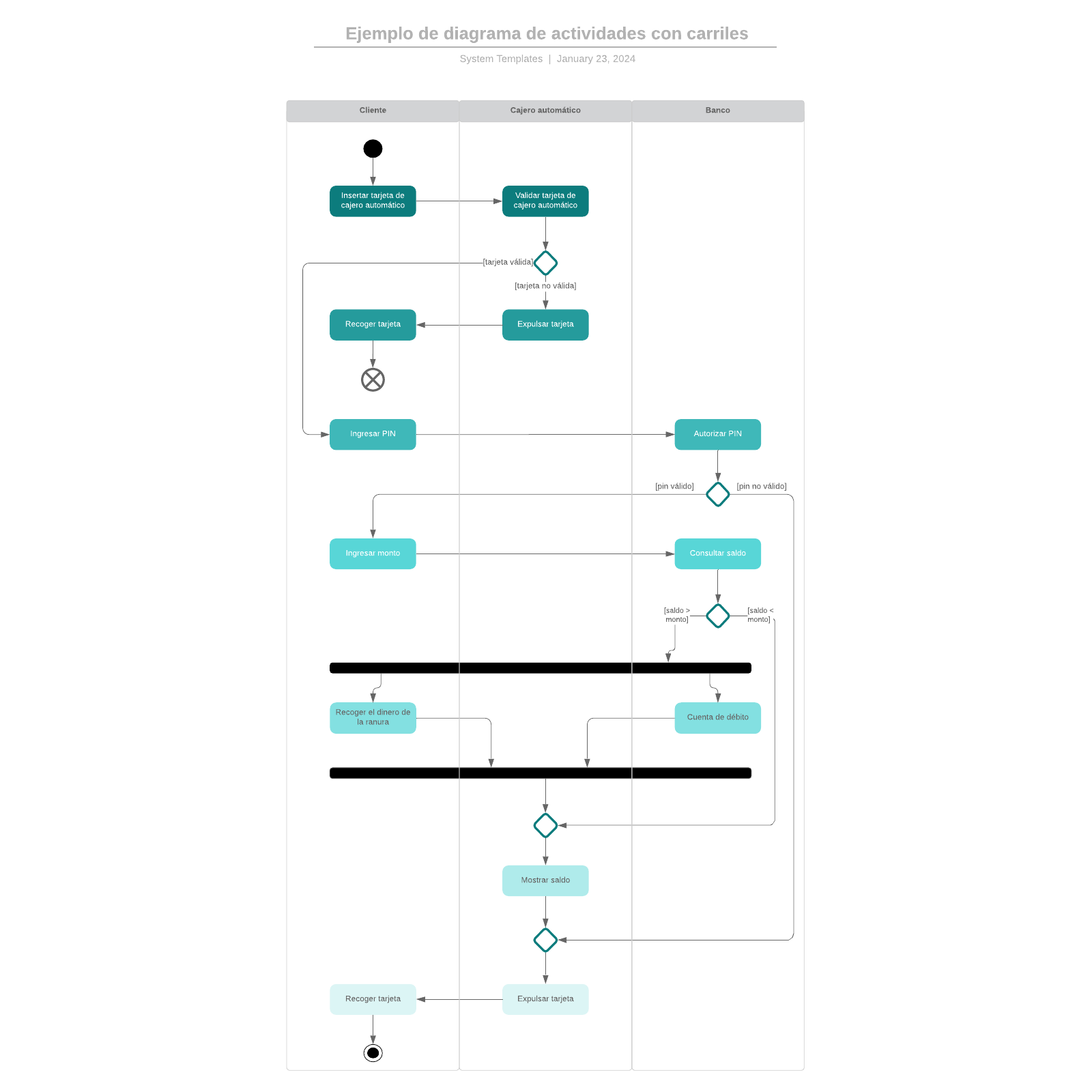 Ejemplo de diagrama de actividades con carriles