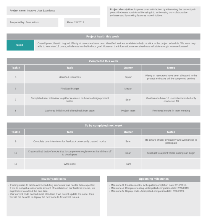 Ir a la plantilla Plantilla de informe sobre el estado semanal