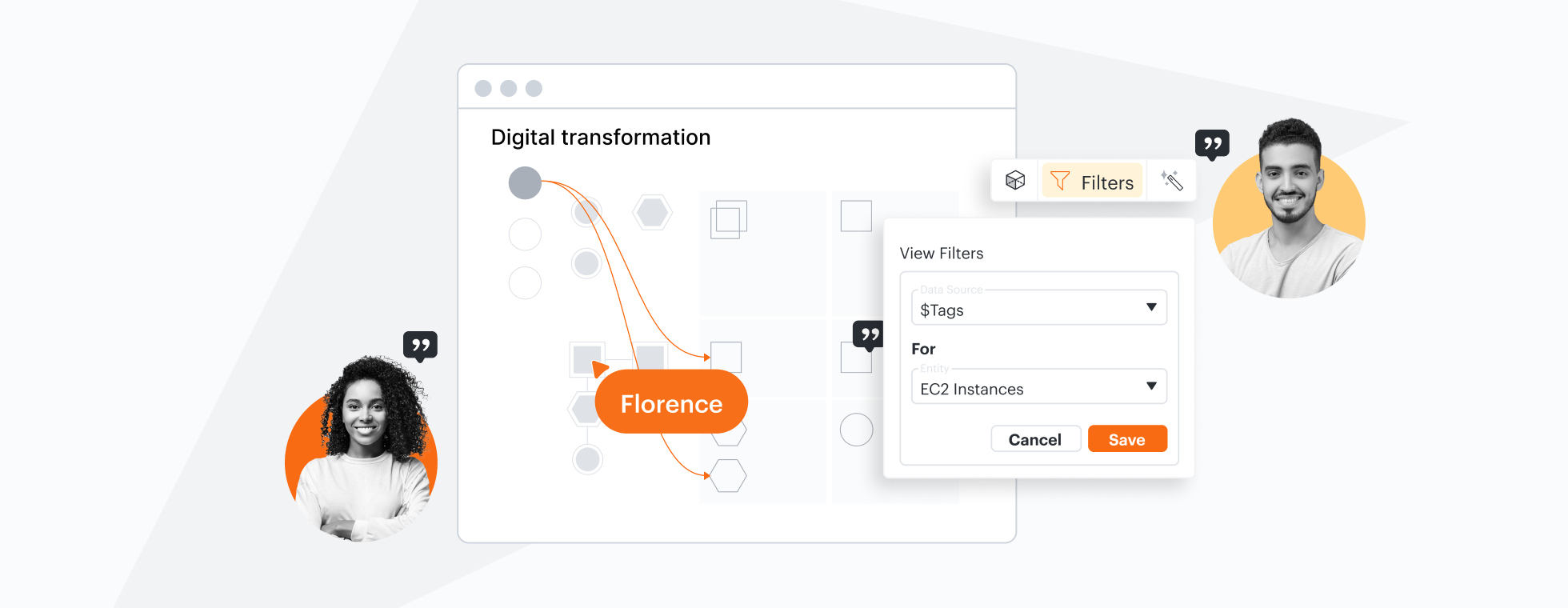 Descubre cómo las funciones avanzadas de Lucidchart, como la vinculación de datos, permiten a los equipos ver y adaptar sus mejores ideas, así como emprender acciones relacionadas con estas.