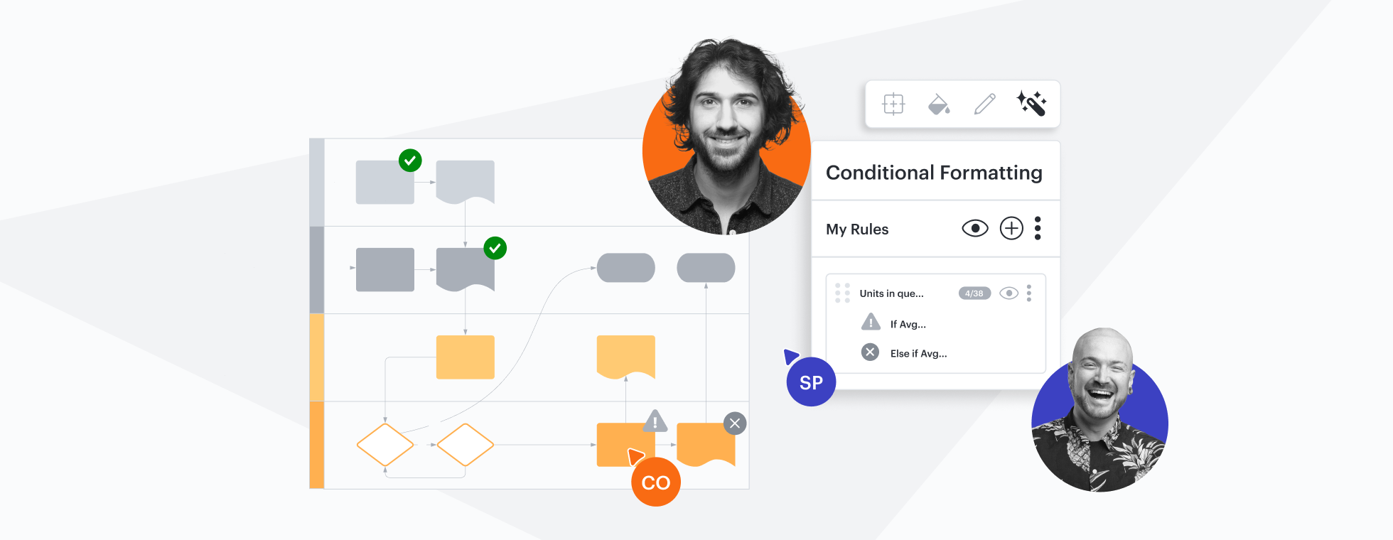 Lucid, diseñado para ayudarte a transformar datos complejos en información práctica, es la plataforma de colaboración visual más utilizada. Por el contrario, Visio carece de funciones que hacen que los diagramas sirvan para concretar acciones.
