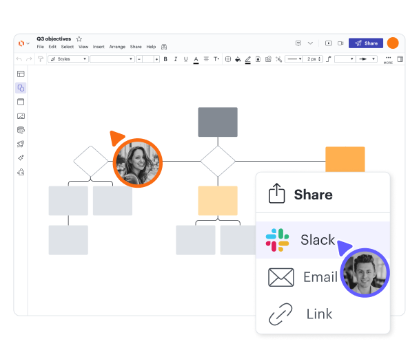 Drive alignment with your team by collaborating in the same space. Quickly map out processes and ideas together in real time so that you never miss a beat.