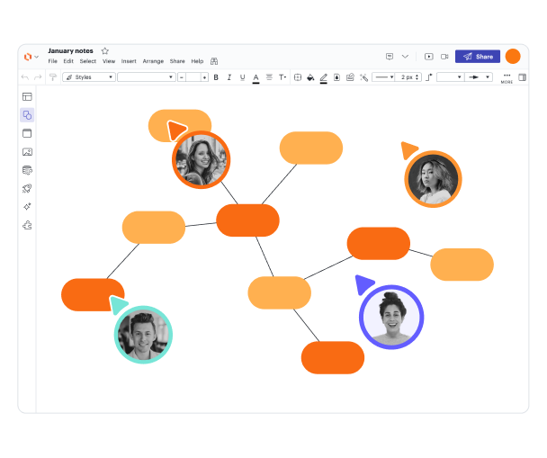Use our mind map creator to structure and share ideas on an infinite canvas.