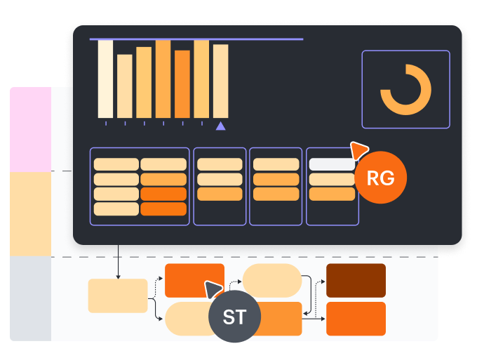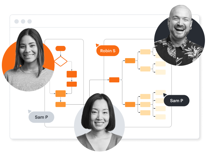 Drive alignment with your team by collaborating in the same space. Quickly map out processes and create infographics together in real time so that you never miss a beat.