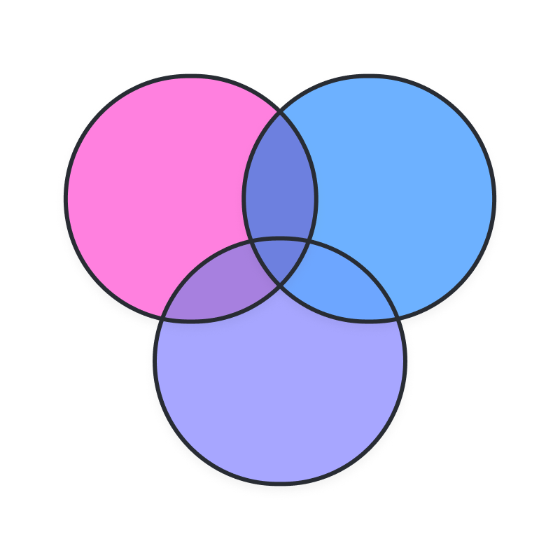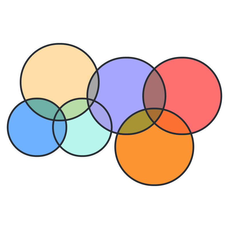Compare and contrast different sets of elements. Visually analyze their shared traits and unique characteristics. Use this Venn diagram creator to increase your understanding of the relationship between sets, and improve decision-making.