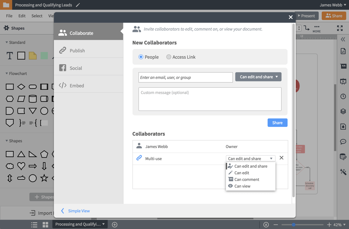 - Partagez votre diagramme avec votre équipe pour commencer à collaborer.