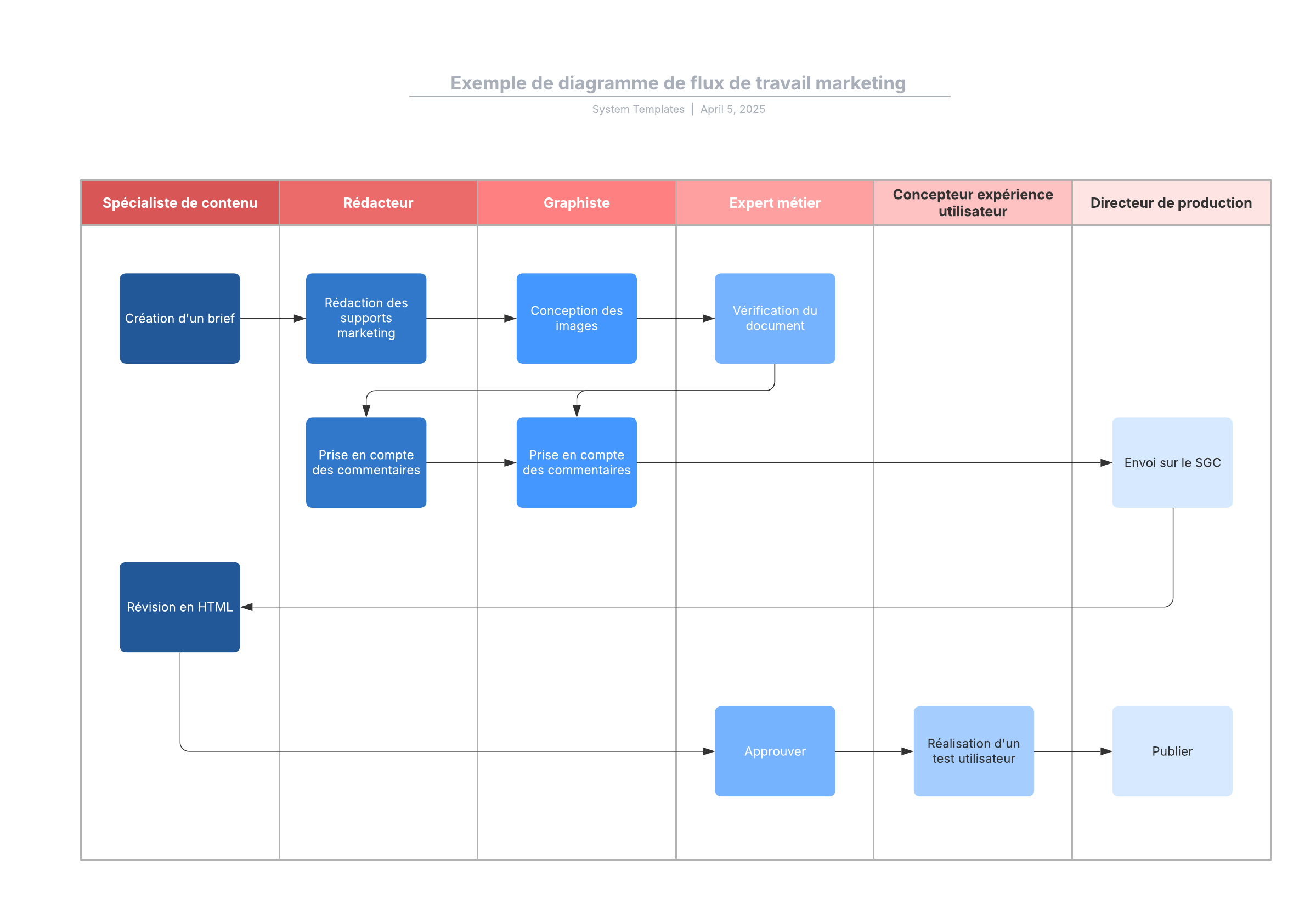 Accéder au modèle Exemple de diagramme de flux de travail marketing