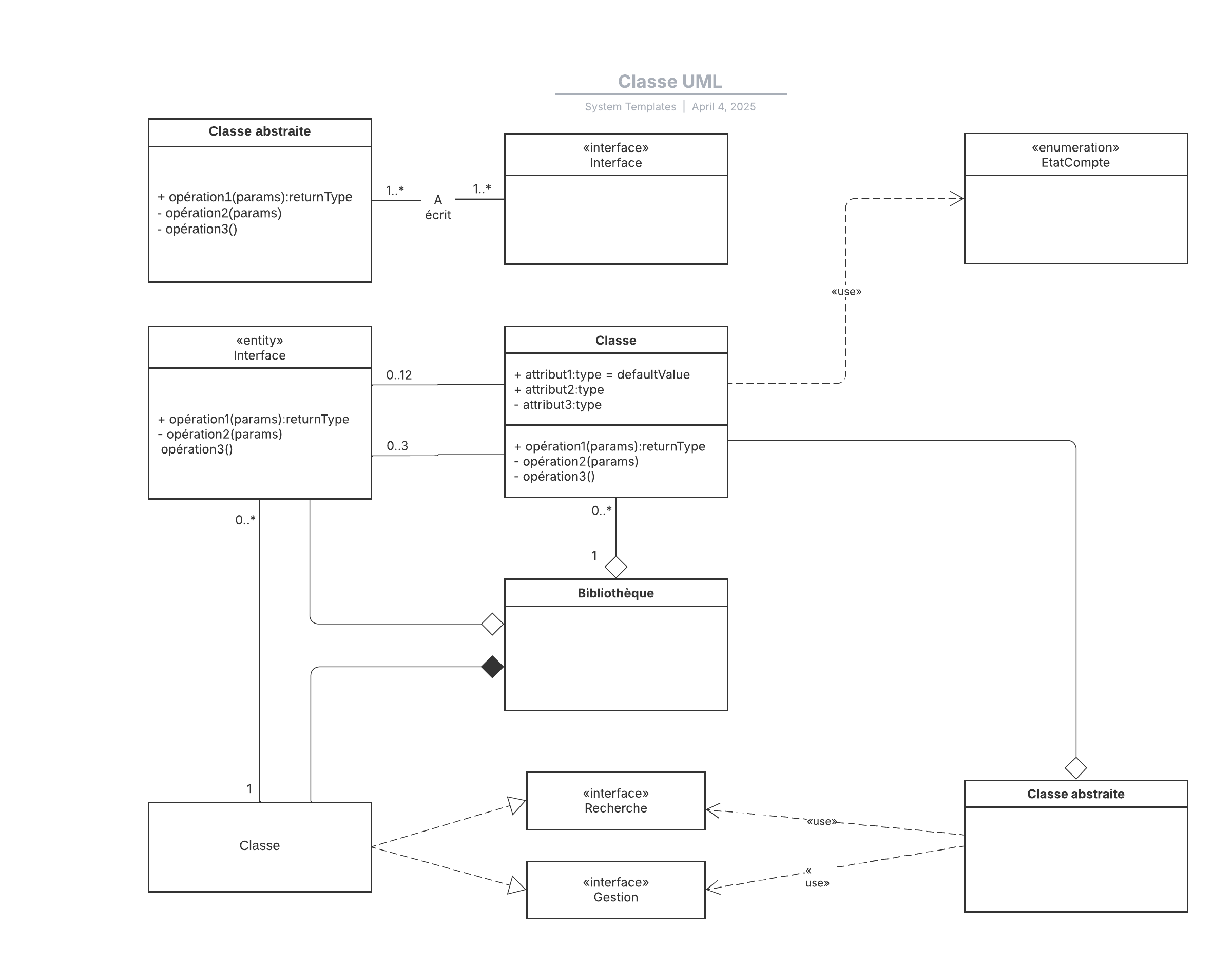 Utilisez un modèle de notre galerie pour créer un diagramme UML en ligne tout simplement.
