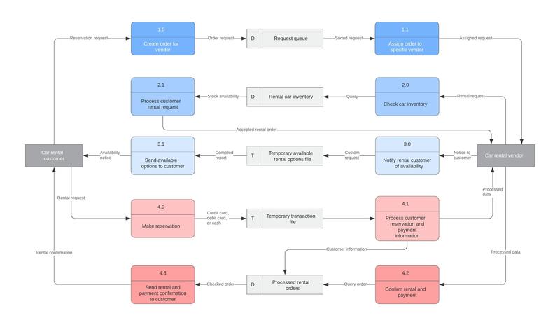 Les diagrammes de contexte sont simples à élaborer, et les fonctionnalités intuitives de Lucidchart contribuent à ce qu'ils le restent. Que vous créiez un simple DFD de niveau 0 ou que vous cartographiiez des niveaux plus complexes de flux de données, vous pouvez générer une représentation professionnelle de tous vos systèmes ou processus grâce à nos centaines de modèles d'ingénierie et aux symboles normalisés contenus dans nos bibliothèques de formes dédiées. Les fonctionnalités Premium de Lucidchart permettent également aux équipes d'automatiser la conception d'autres diagrammes techniques: générez des diagrammes de séquence UML à partir d'un balisage de texte, importez la structure de votre base de données pour construire un diagramme EA et visualisez votre architecture cloud avec Lucidscale.