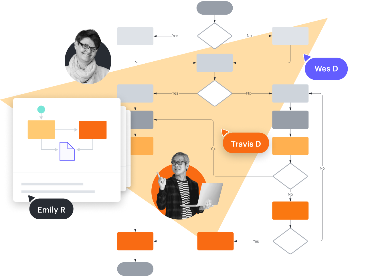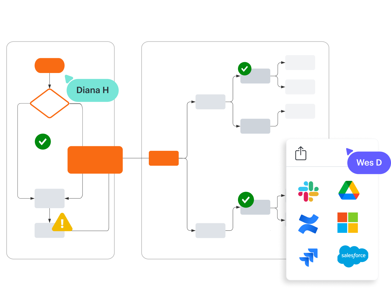 Donnez à vos équipes les moyens de visualiser et de clarifier leurs idées, systèmes et processus complexes. Ensuite, coordonnez vos efforts sur les étapes à suivre.