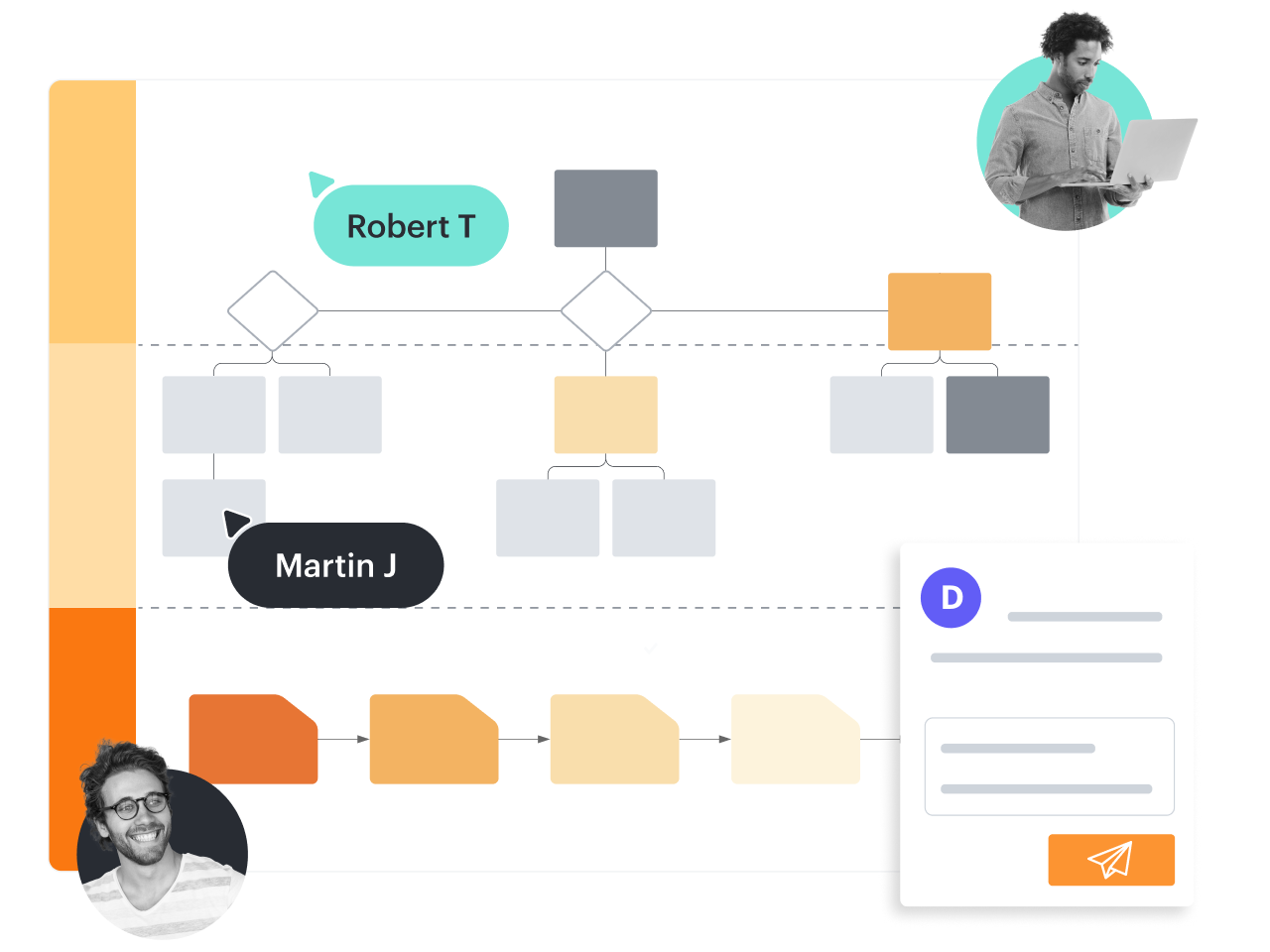 Rassemblez votre équipe pour cartographier rapidement le flux de n’importe quel système, processus ou projet. Utilisez les fonctionnalités de commentaires pour obtenir un retour d’information instantané.