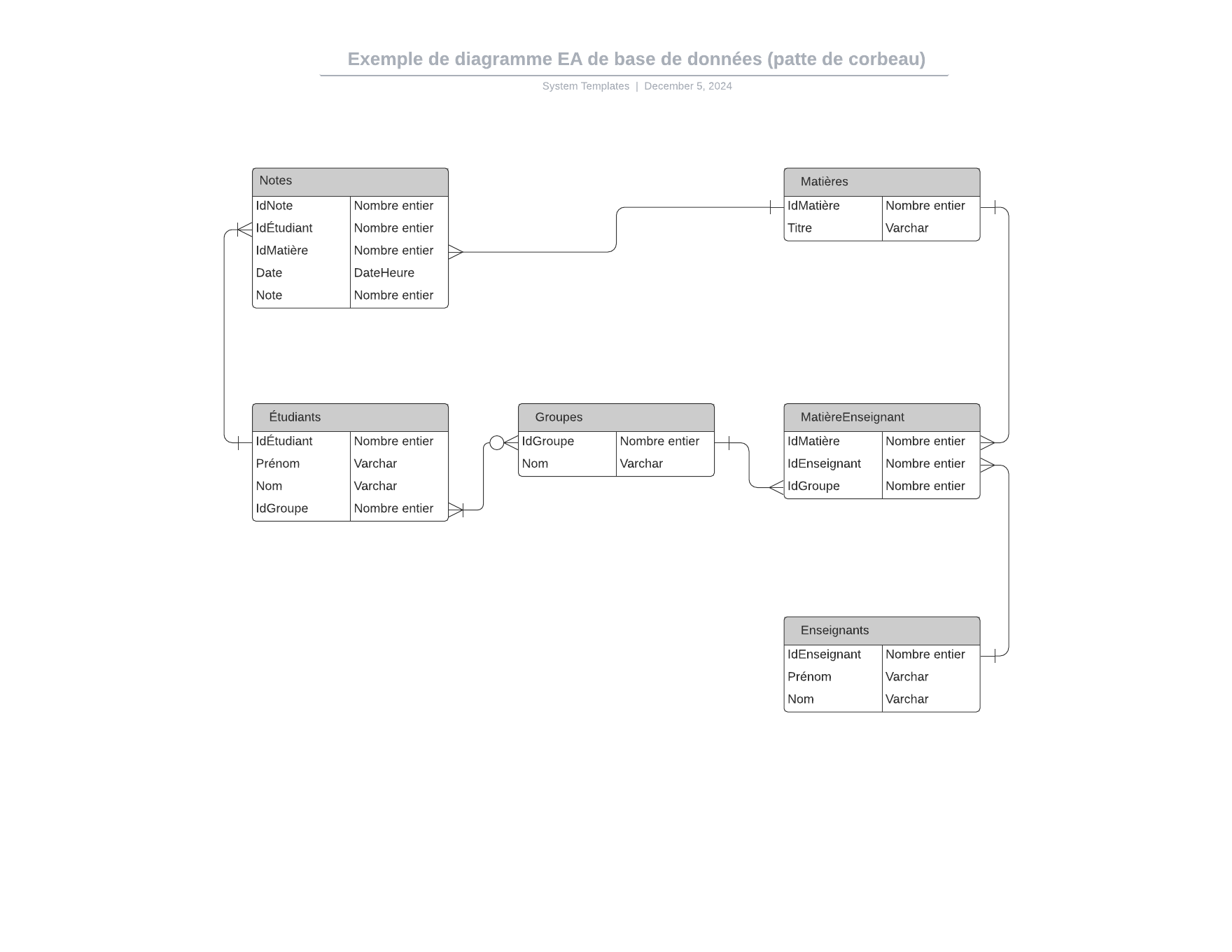 Voici des exemples de diagrammes entité-association utilisant chacun de ces styles.