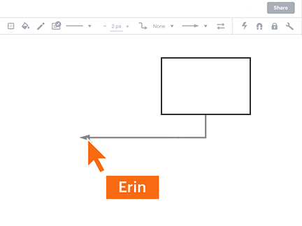 Lucidchart migliora il modo di collaborare dei team con il co-authoring in tempo reale, la chat in fase di editing, i commenti con forme specifiche e i cursori collaborativi.