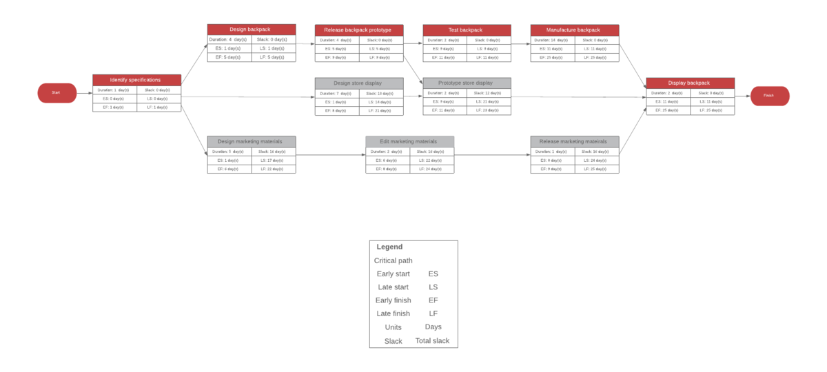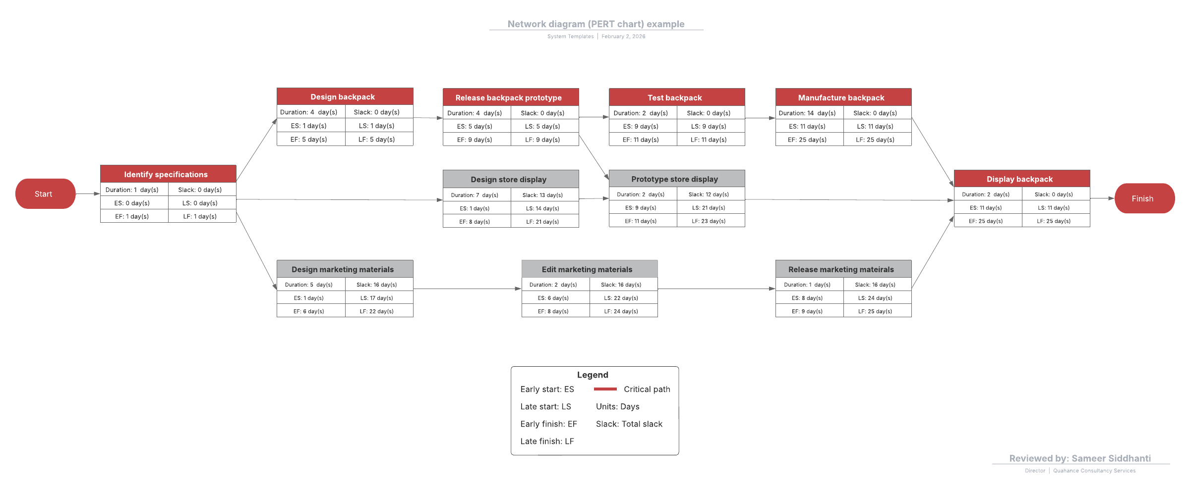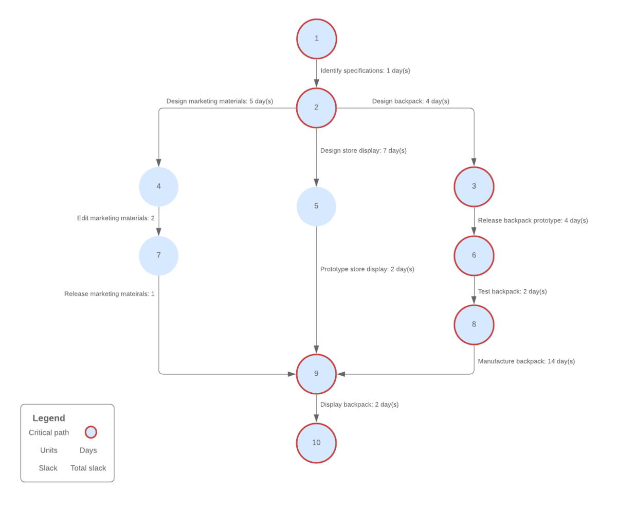 必要に応じてクリティカルパスを調整し、完了までにかかる時間を修正したり、新しい情報を含めます。プロジェクト完了までにかかる現実的な期間が把握できたら、CPM 図を関係者に共有して全員でスケジュール感や要件を正確に共有しましょう。