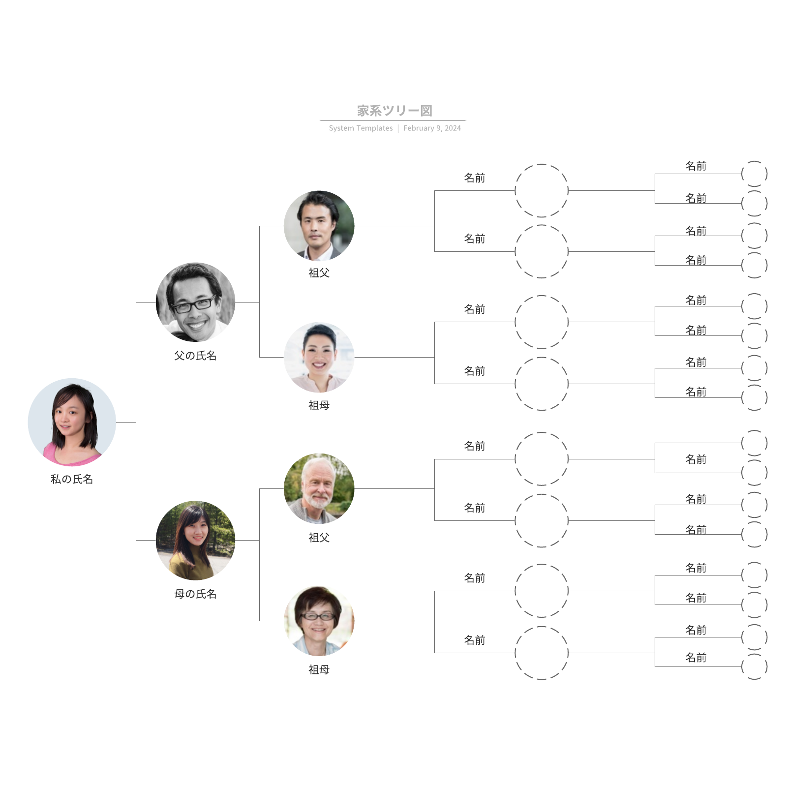 テンプレートを選んで、家系図作成ツールの使用を始めてみましょう。