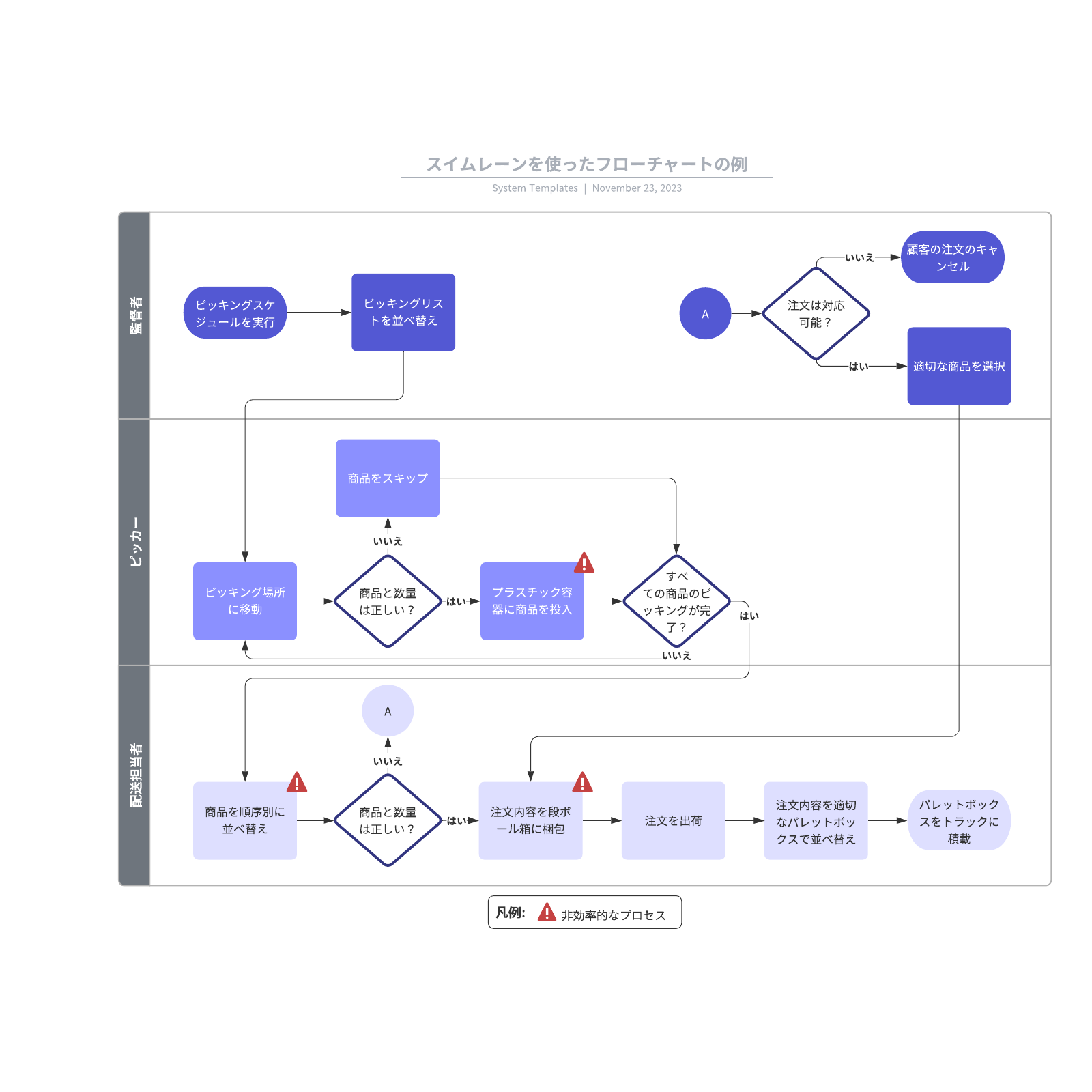 スイムレーンで業務フローやプロセスを視覚化!