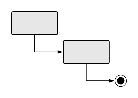 一般に、どの状態図も初期状態を示す塗りつぶしの円で始まり、最終状態を示す二重の円で終わります。ただし、明確な入口点と出口点はあるものの、状態図が事象の全体的な進行を表す上で常に最適の図であるとはいえません。むしろ、特定の種類の行動、とりわけある状態から別の状態への移行の図示に適した図です。