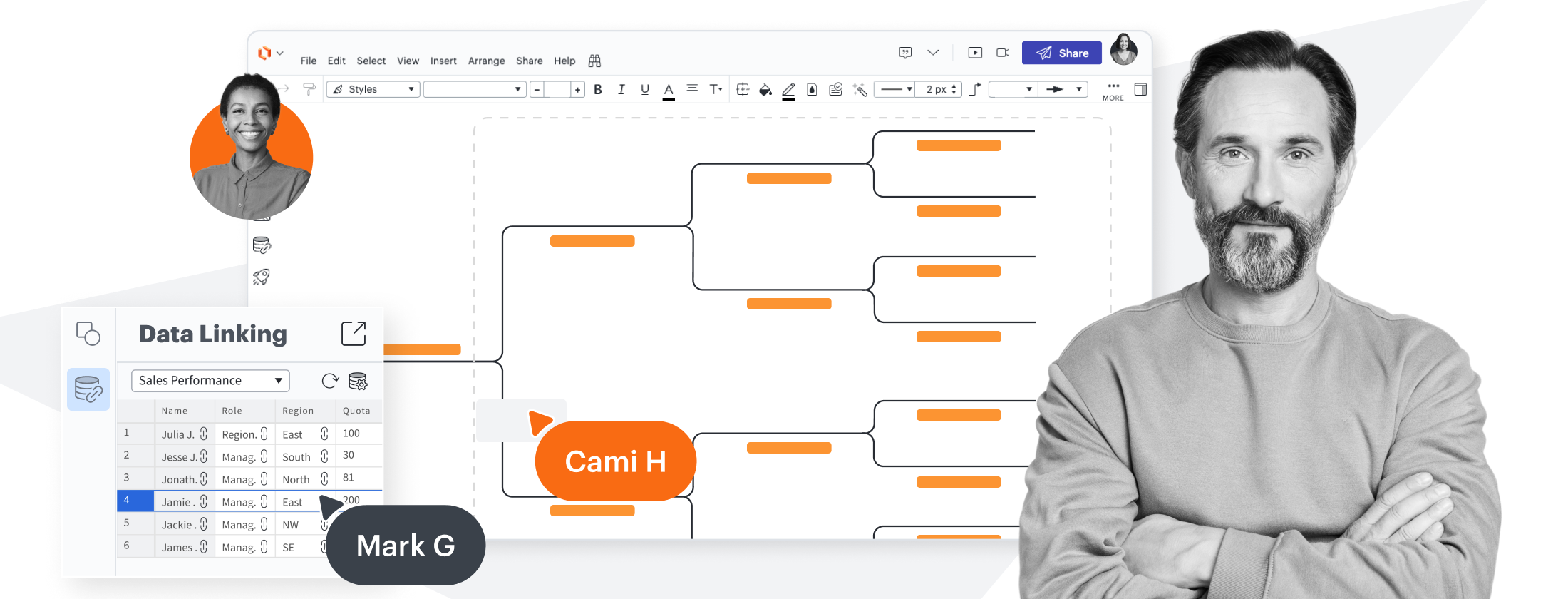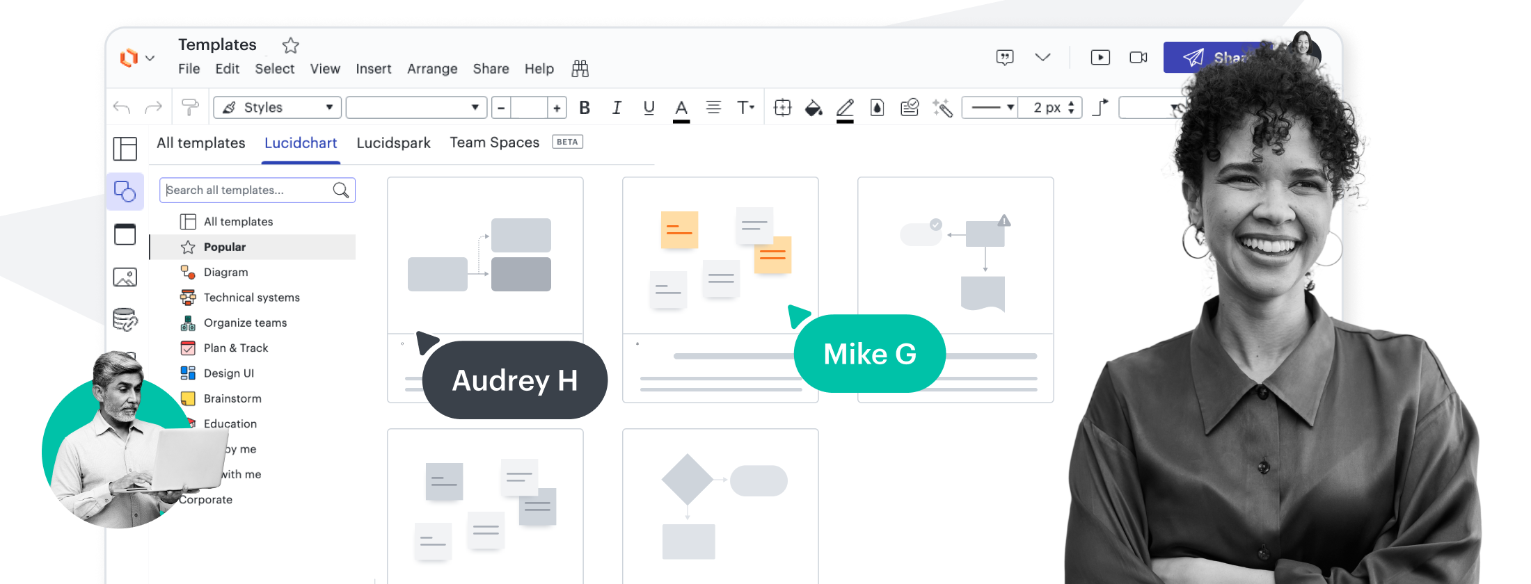 複数の共同編集者が同時に同じ図を作成・編集できるようにすることで、作業を効率化します。