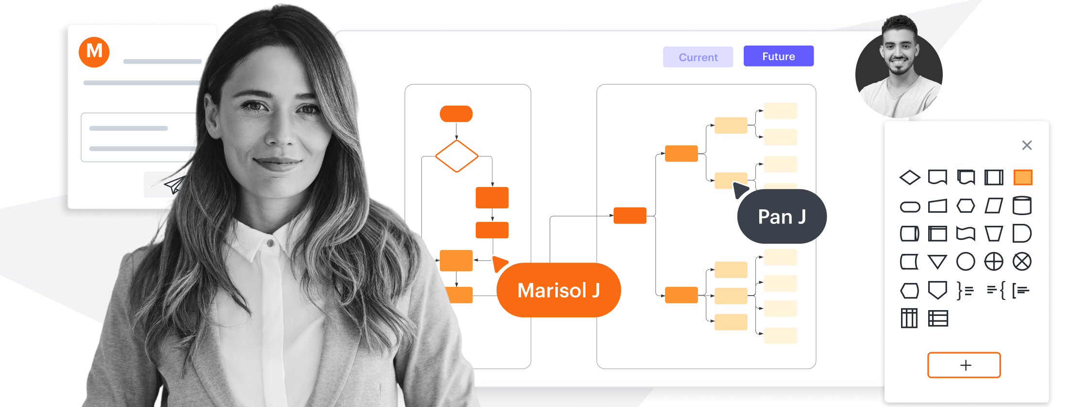 Lucidchart の Lucid AI を使って、テキストベースのプロンプトをフローチャートに簡単に変換 。分かりやすいビジュアルで時間を節約しながらワークフローを洗練させます。