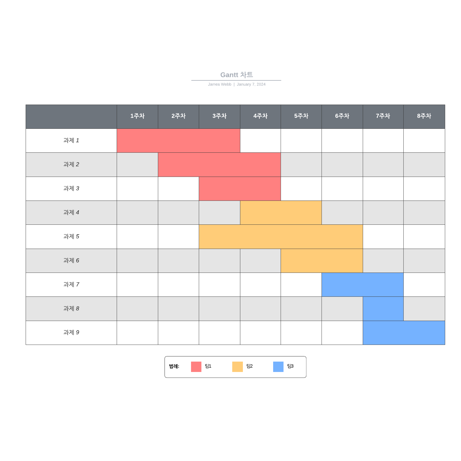갤러리에서 제공하는 템플릿으로 나만의 간트차트 구축을 시작하세요.