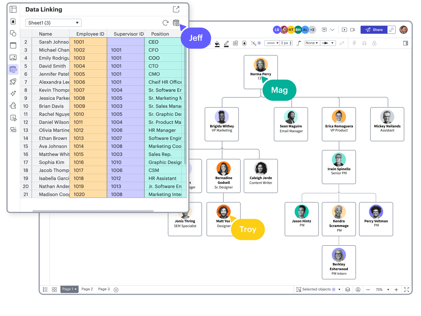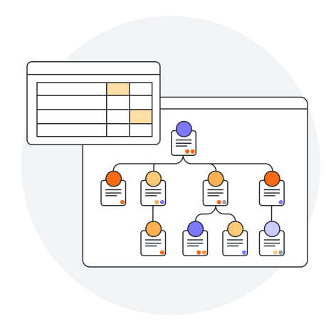 Build dynamic org charts to visualize people and workloads by department or team. Use features such as: