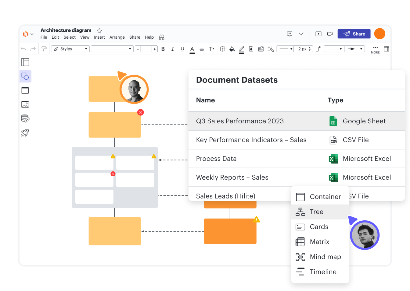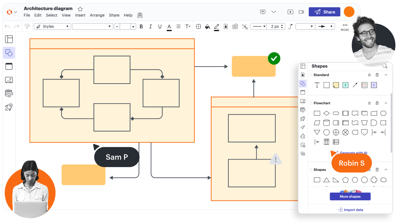 Build technical diagrams in minutes using customizable templates and industry-standard shape libraries.