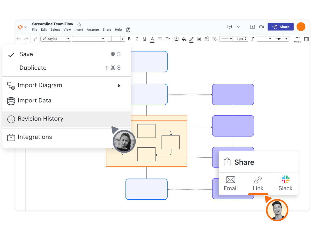Connect Lucidchart with apps from top providers such as Atlassian, Google, Microsoft, Slack, and more.
