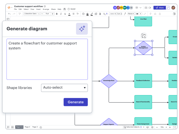 Use AI in Lucidchart to effortlessly transform text prompts into polished flowcharts and diagrams that you can iterate on.