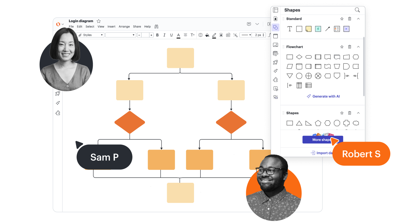 Use AI in Lucidchart to effortlessly transform text prompts into polished flowcharts and diagrams that you can iterate on.