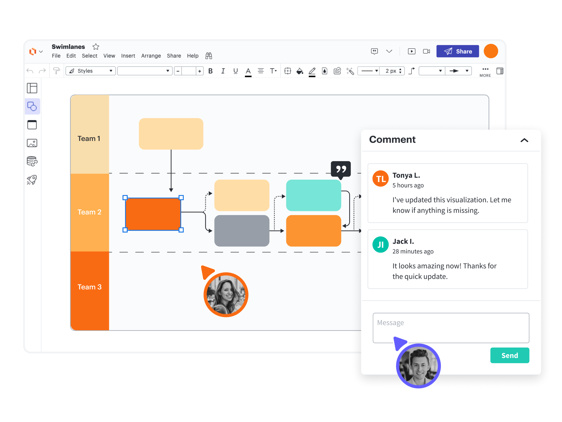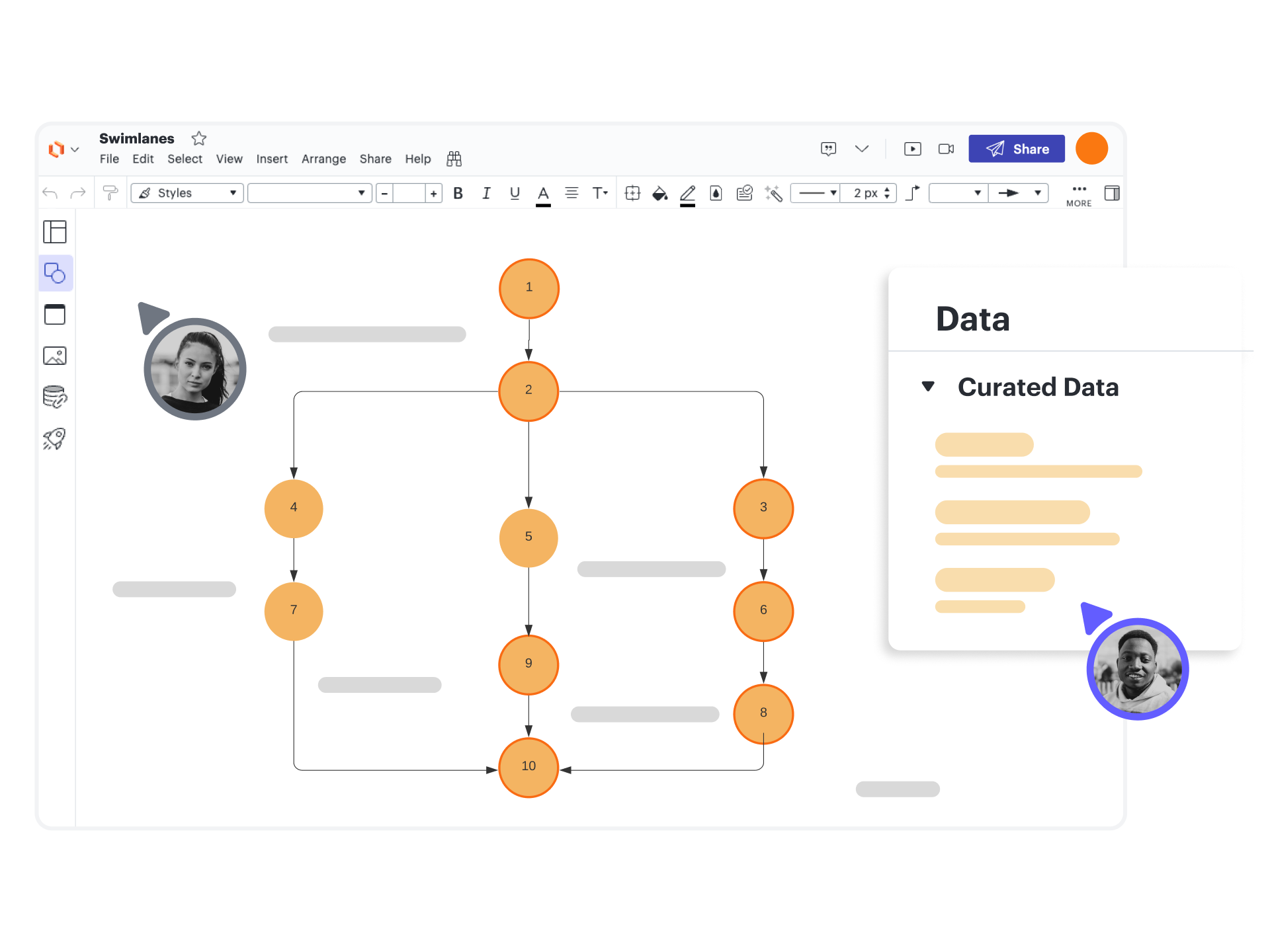 Bring the right people together to create visualizations, give feedback, and work together in real time or anytime.