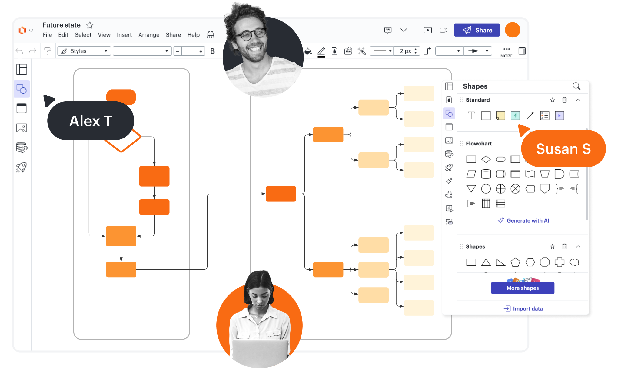 Use AI in Lucidchart to effortlessly transform text prompts into polished flowcharts and diagrams that you can iterate on.