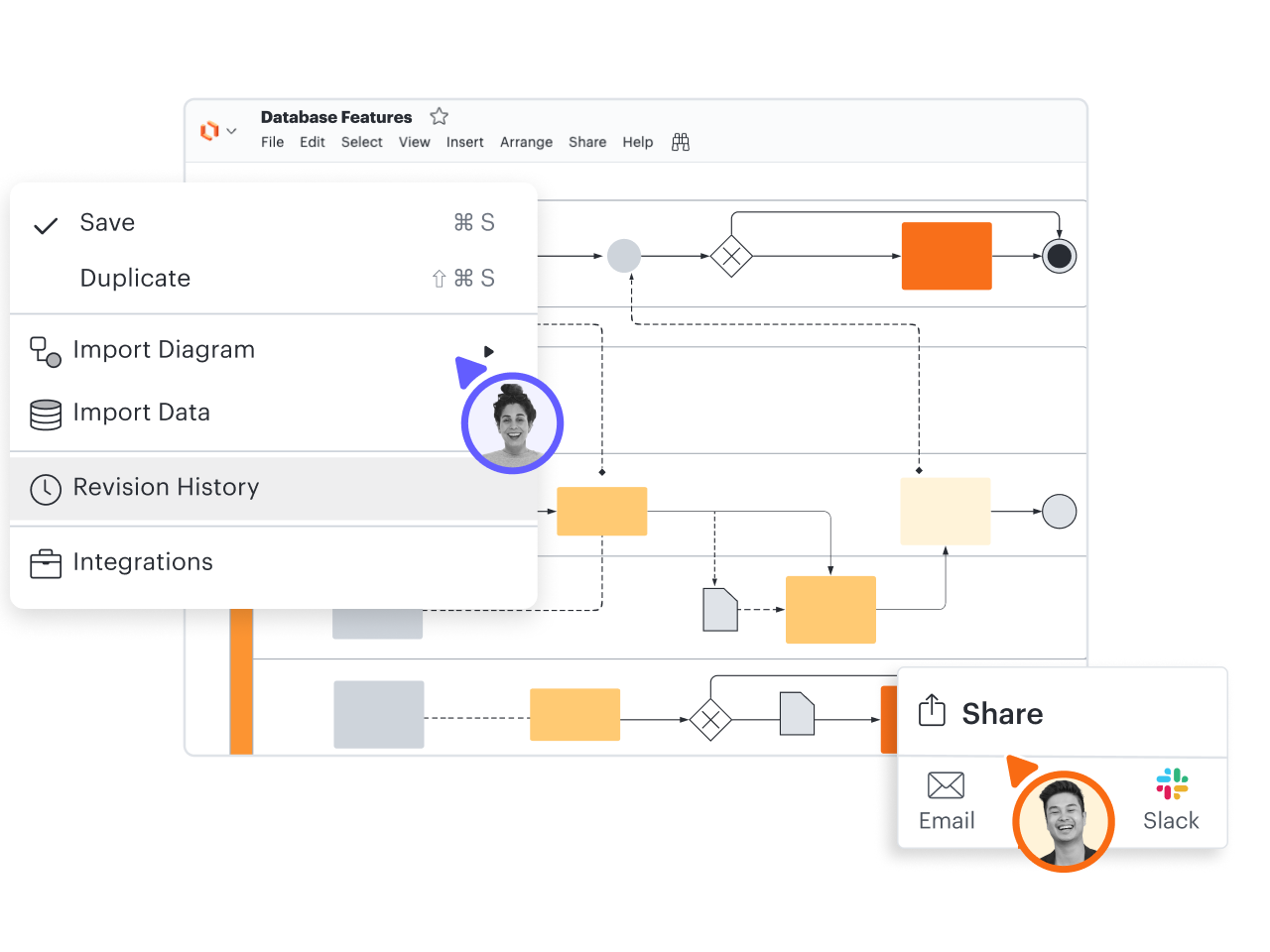 Make teamwork simple. Work together on a database diagram and use commenting, sharing, and revision history features to keep everyone on the same page.