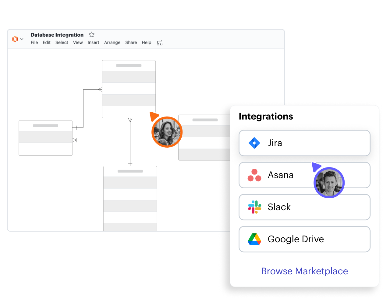 Connect Lucidchart with apps from top providers such as Atlassian, Google, Microsoft, Slack, and more.