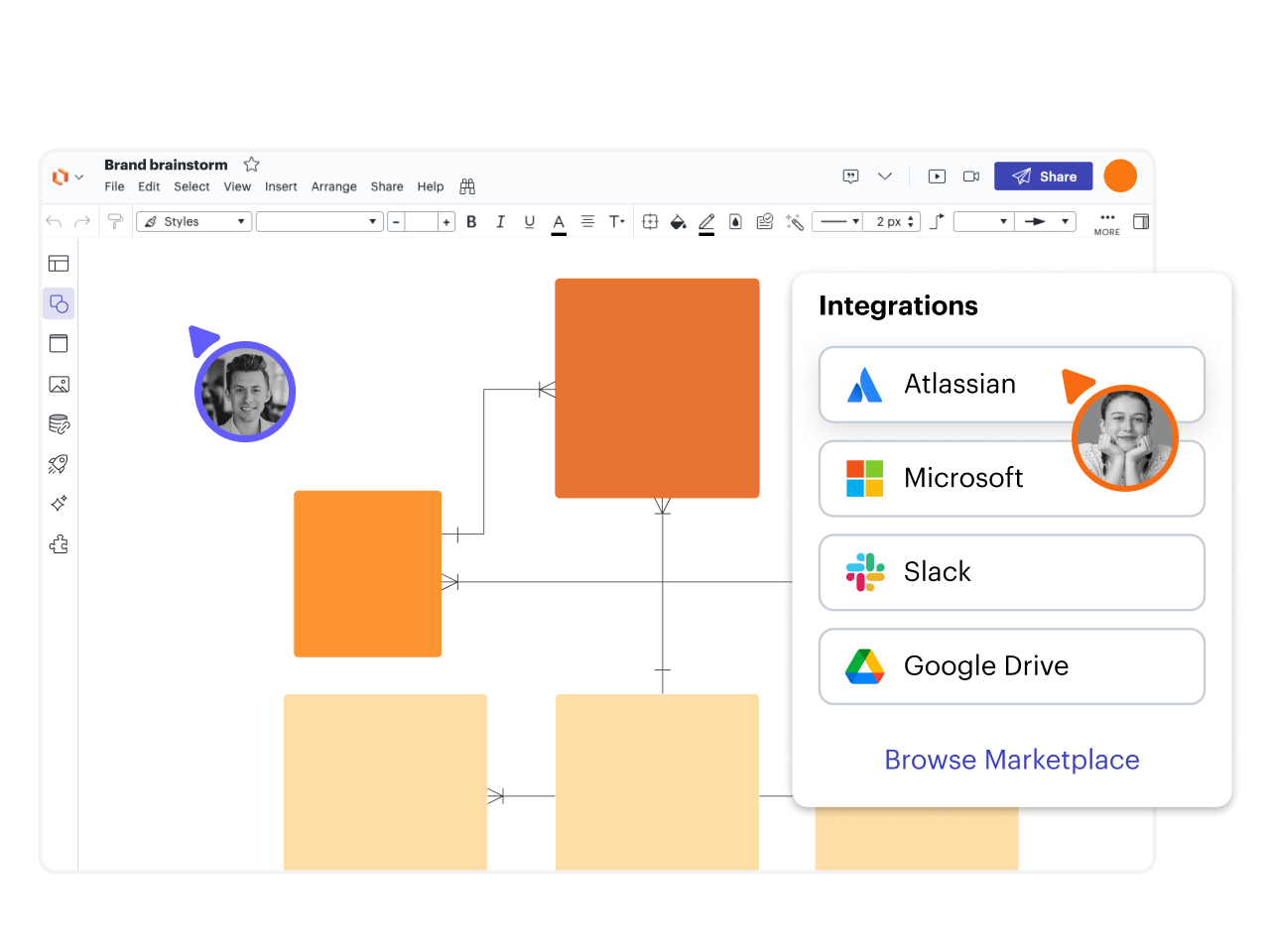 Connect Lucidchart with third-party apps to improve communication, streamline project planning, automate documentation, and more.