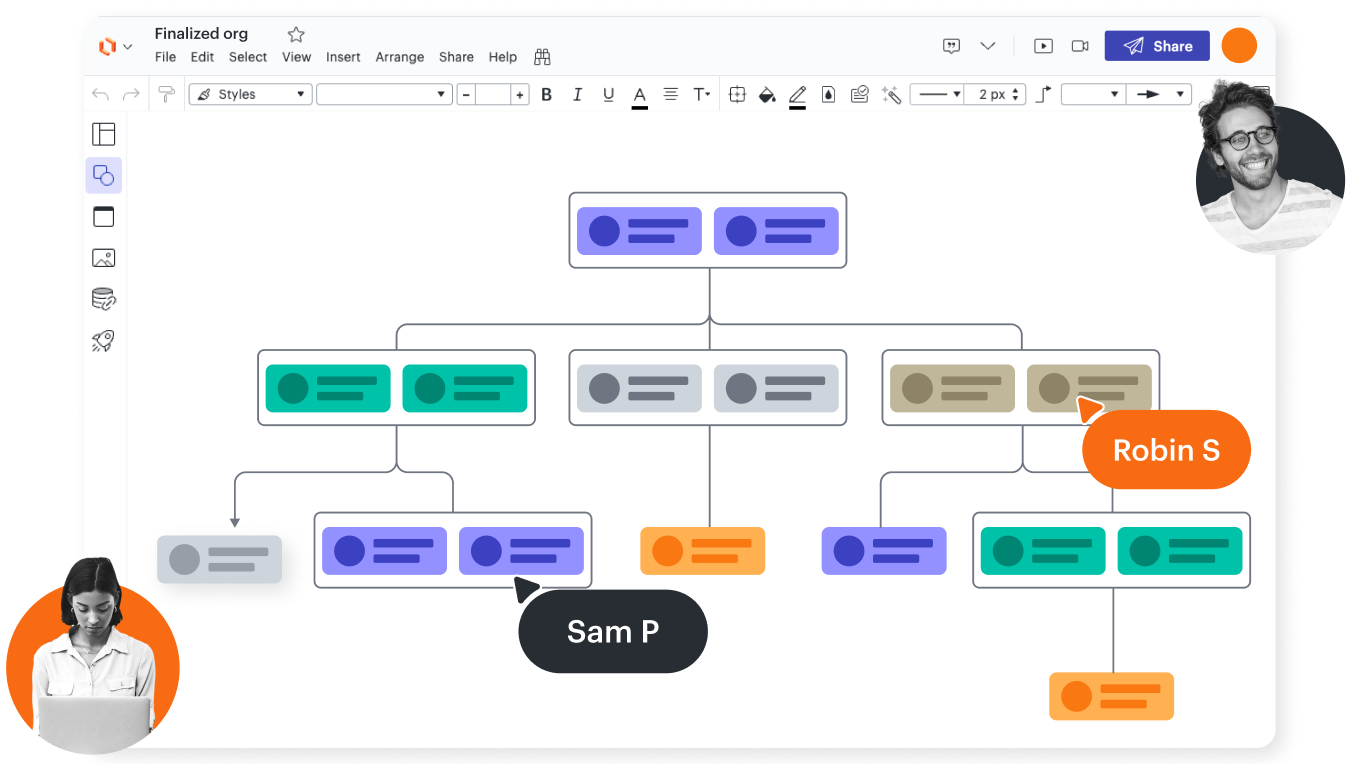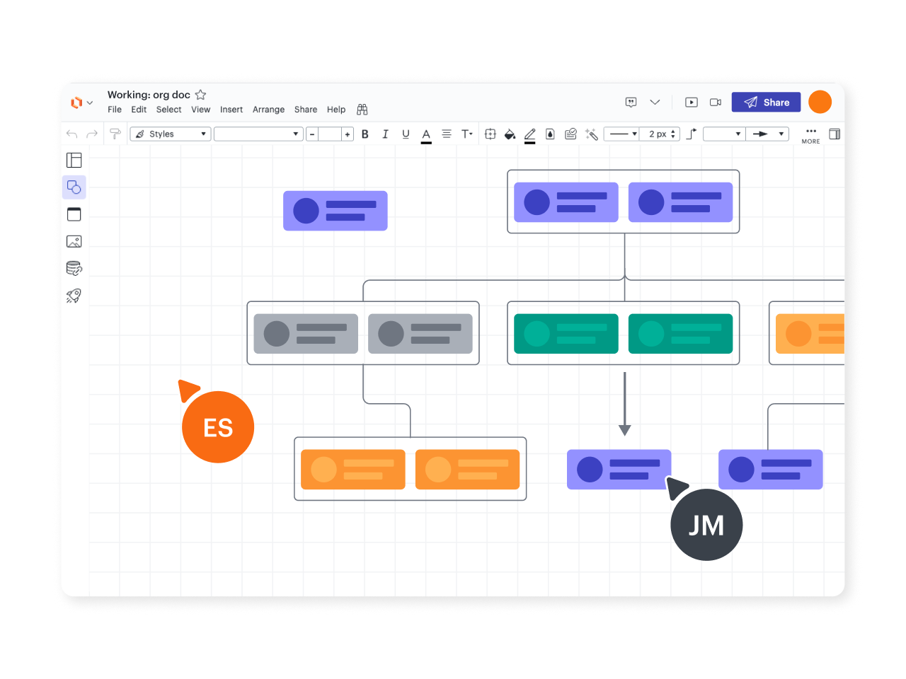 With Lucidchart, users of all technical abilities can easily add and edit shapes, lines, text, colors, and links to images and content.