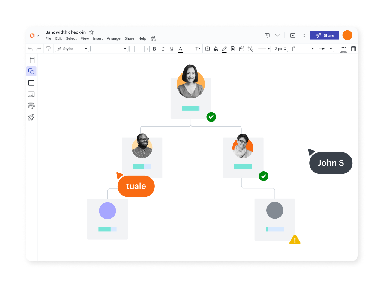 Plan and document any process to help your team see how it works or how it could work better. Use customizable templates and shape libraries to build high-level or in-depth process maps
