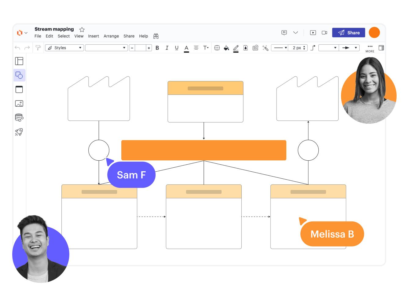 Visualize and optimize your processes using Lucidchart’s VSM software. Our template library will have you creating polished value stream maps in minutes.