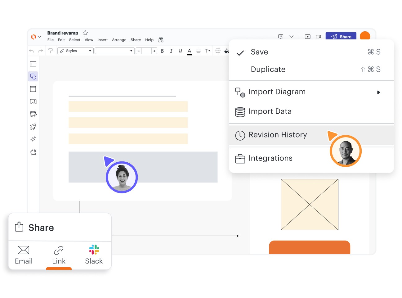 Streamline teamwork. Work together on a wireframe and use commenting, sharing, and revision history features to keep everyone on the same page.