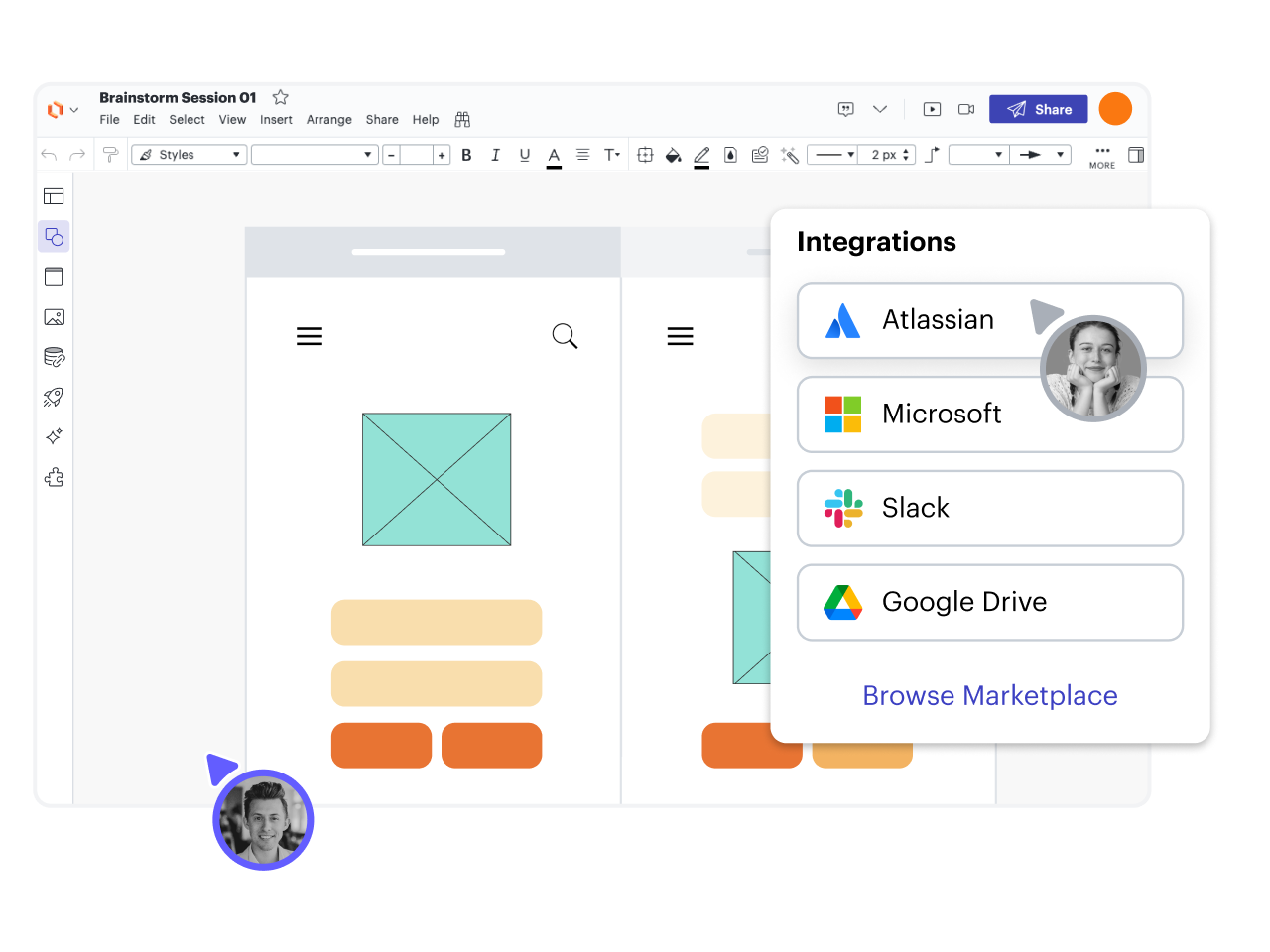 Connect Lucidchart with apps from top providers such as Atlassian, Google, Microsoft, Slack, and more.