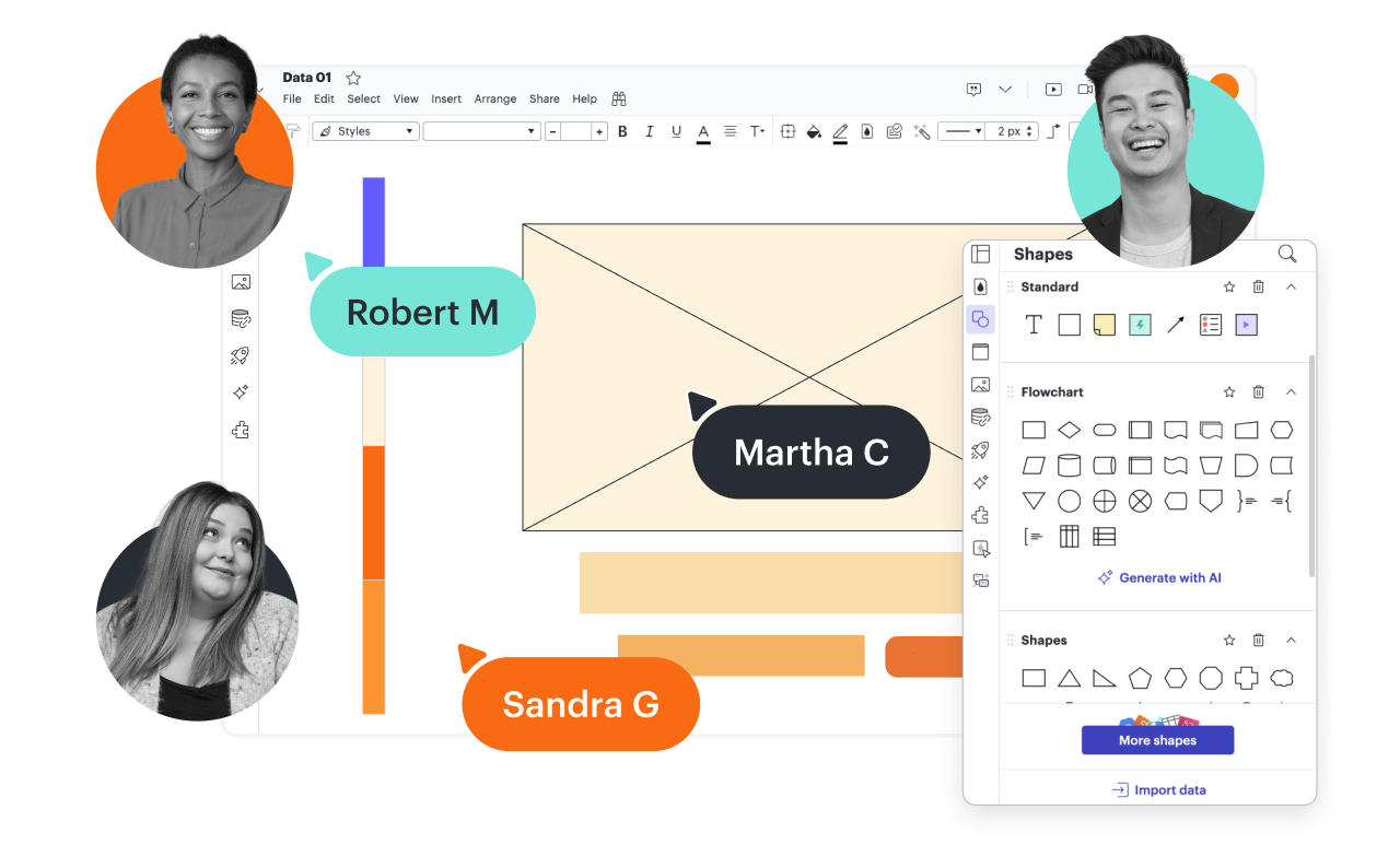 Use AI in Lucidchart to effortlessly transform text prompts into polished flowcharts and diagrams that you can iterate on.
