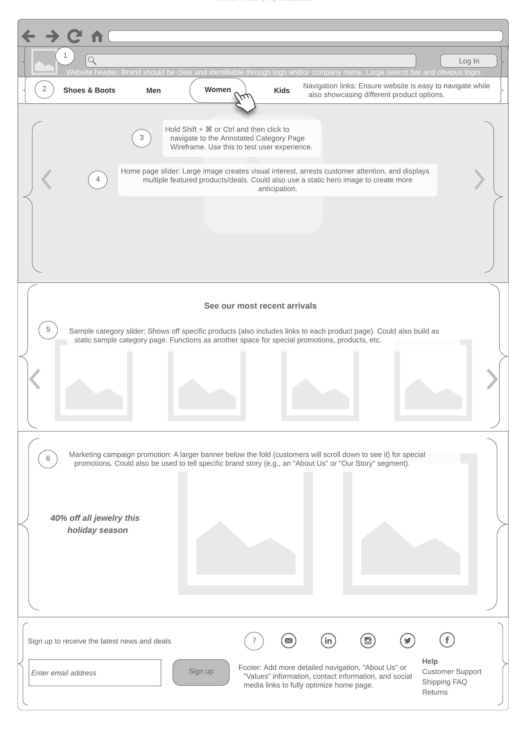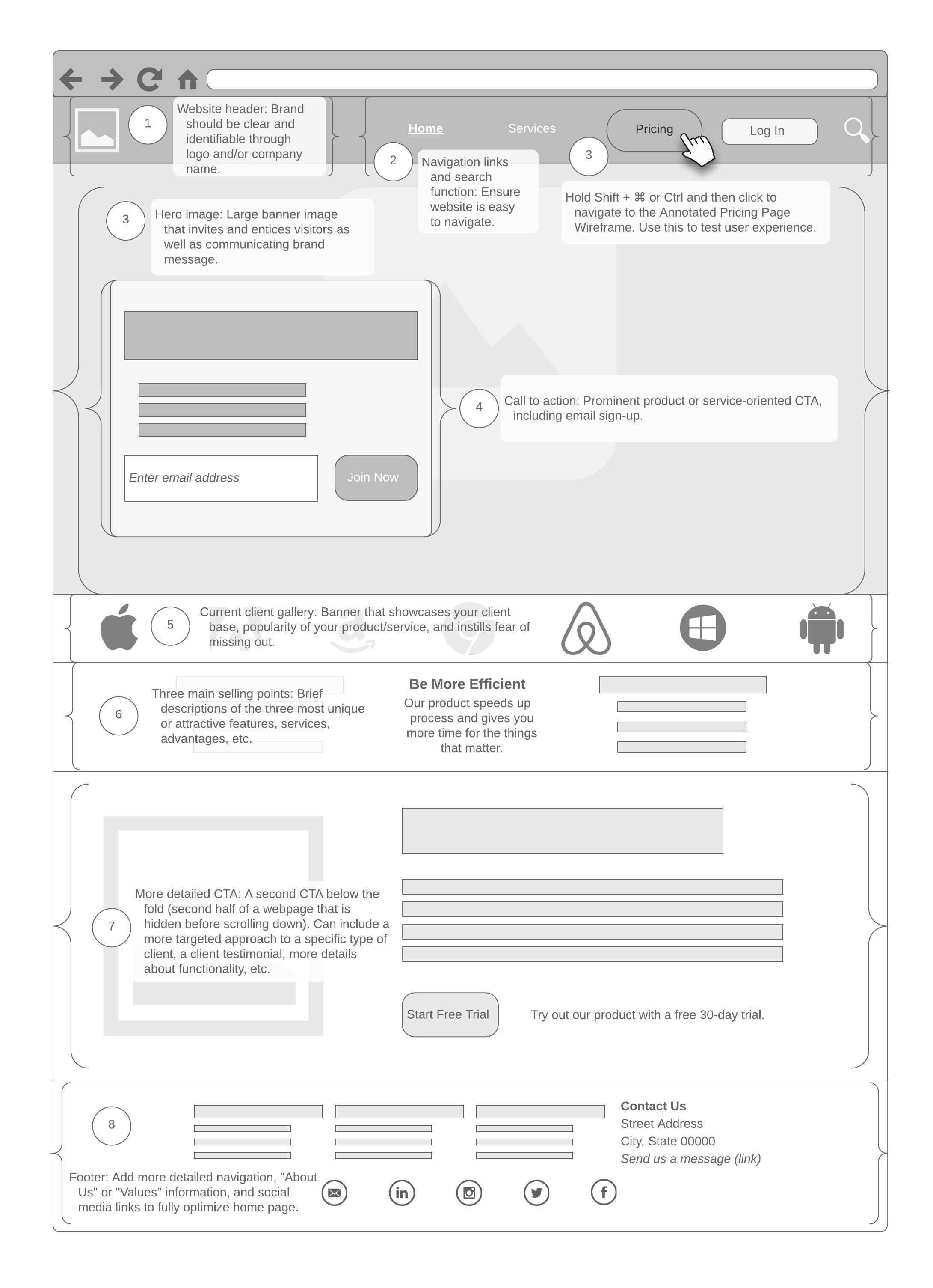As you near completion of your wireframe, simulate website functionality by adding links, layers, hotspots, and arrows to demonstrate the intended user flow.