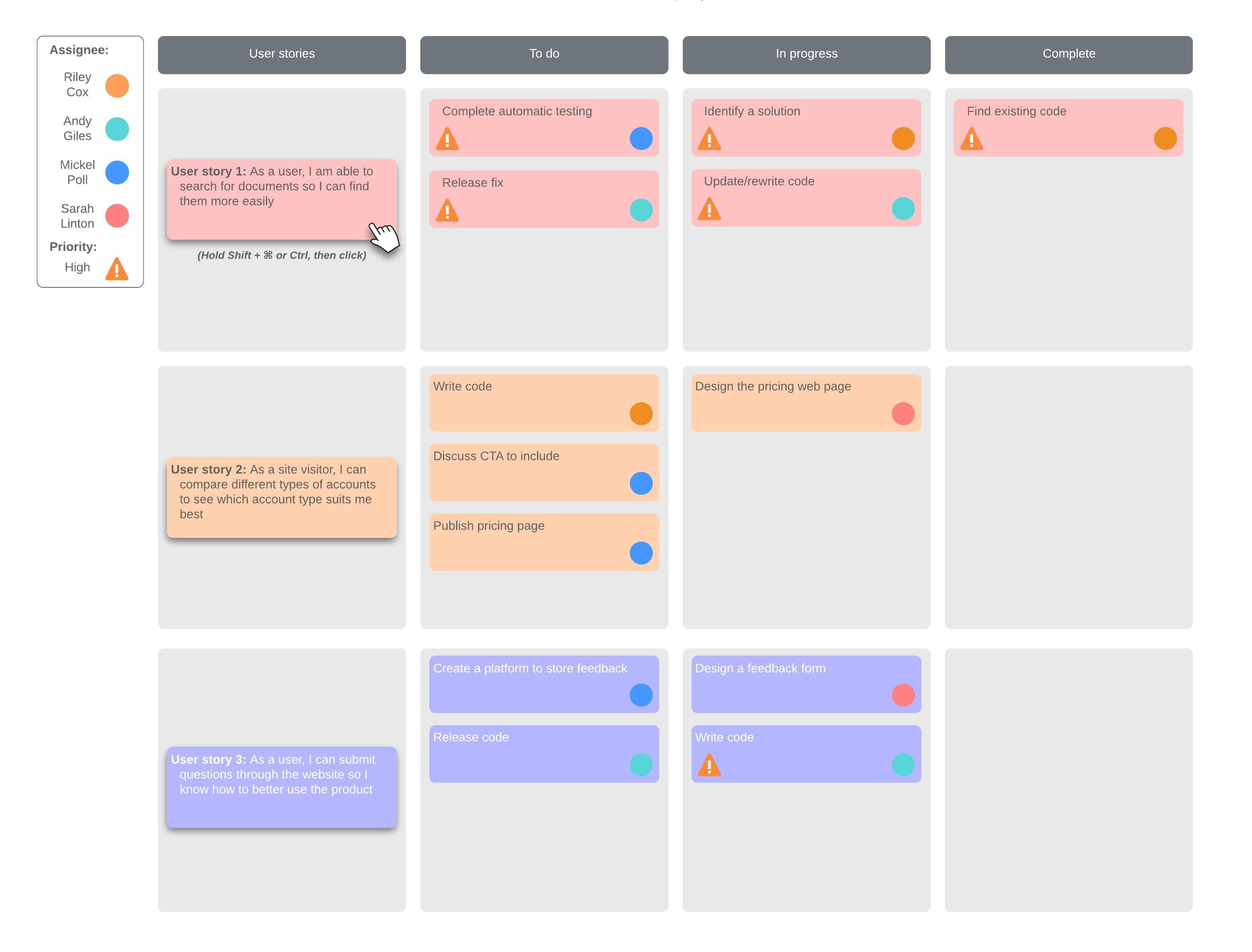 Ga naar het Voorbeeld van gedetailleerd scrumtakenbord-sjabloon