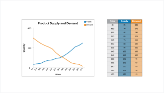 Sjabloon vraag- en aanbodgrafiek met slimme tabellen