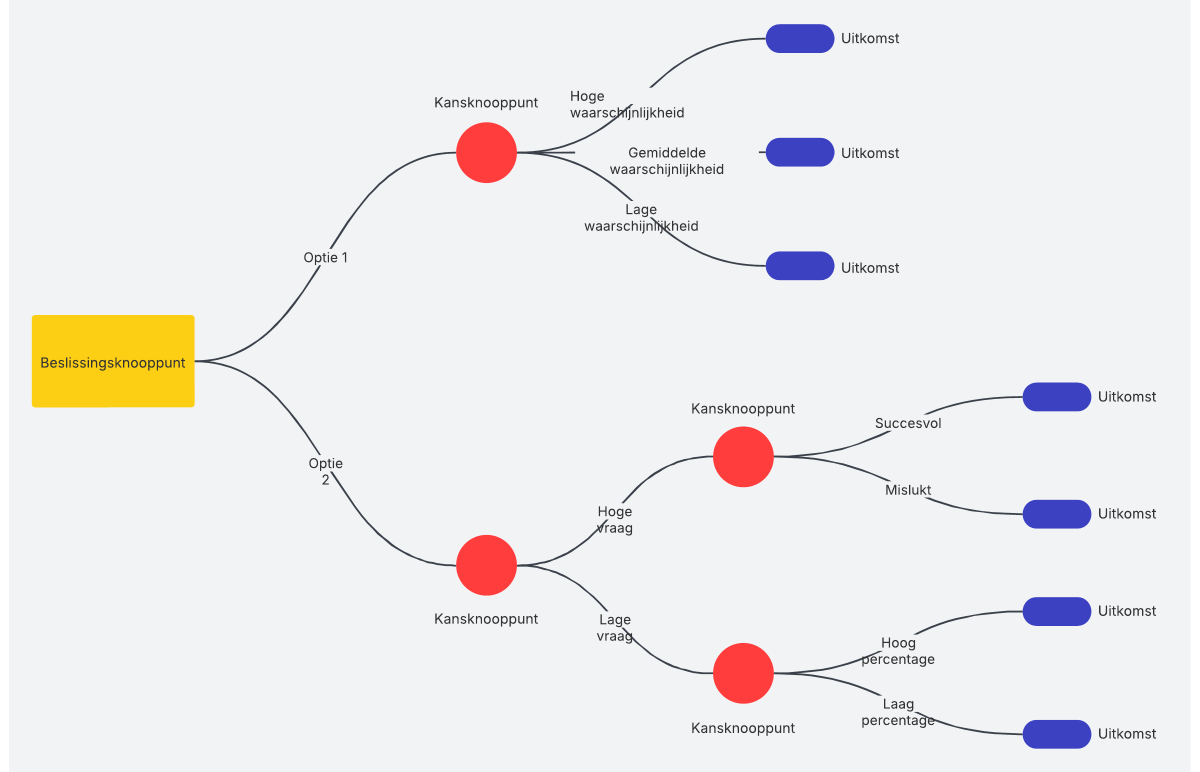 Beslisbomen nodigen je uit om naar alle mogelijke resultaten van een keuze te kijken, zodat je de risico's en gevolgen van je beslissingen beter kunt begrijpen.